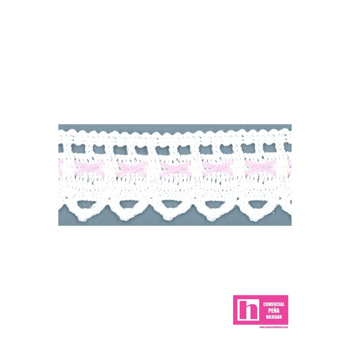9608-2 PUNTILLA BOLILLO KAELA 35 MM. POLIESTER 100% BLANCO/ROSA Venta en piezas de 25.00 M