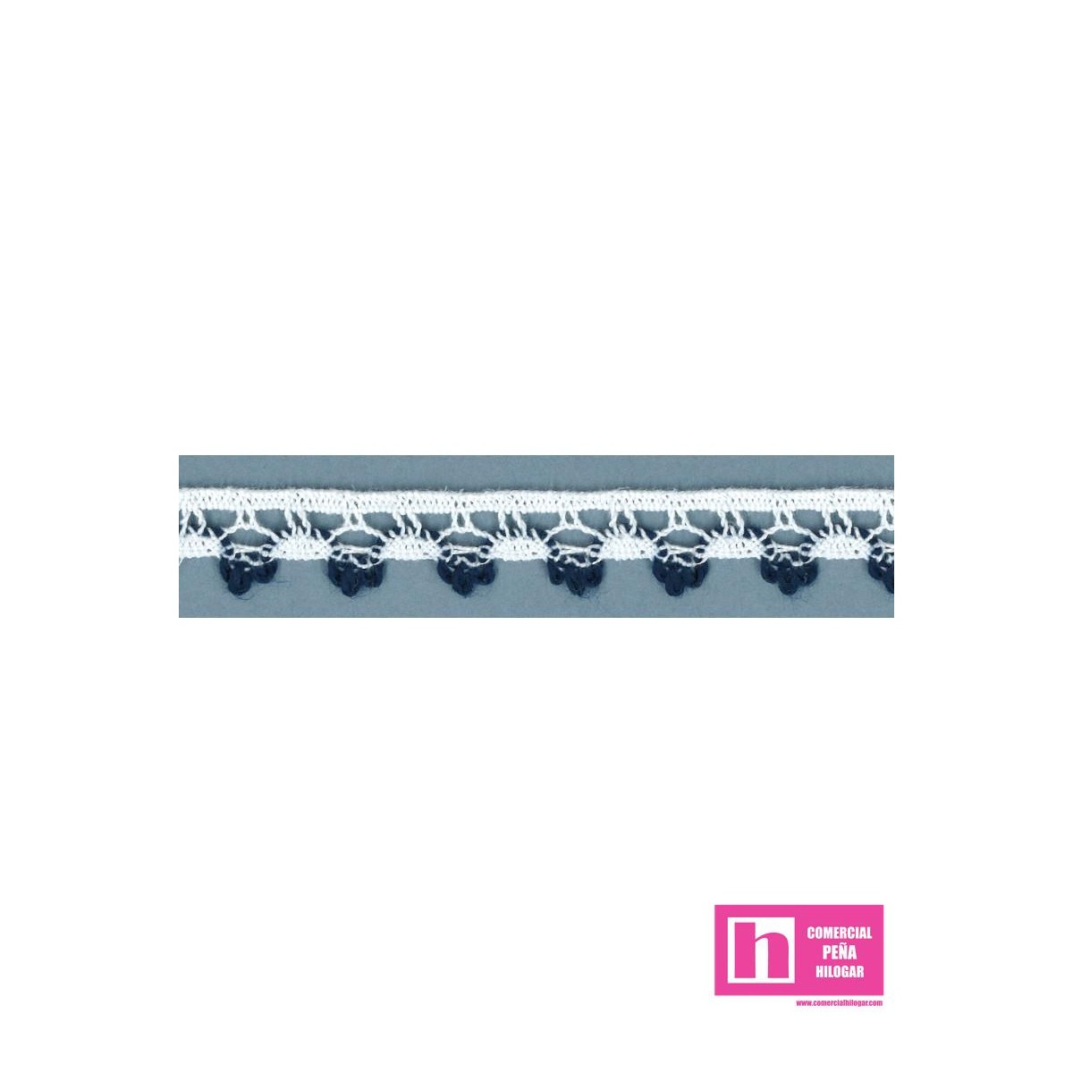 9610-8 REMATE BOLILLO OFRA 12 MM. POLIESTER 100% BLANCO/MARINO Venta en piezas de 25.00 M