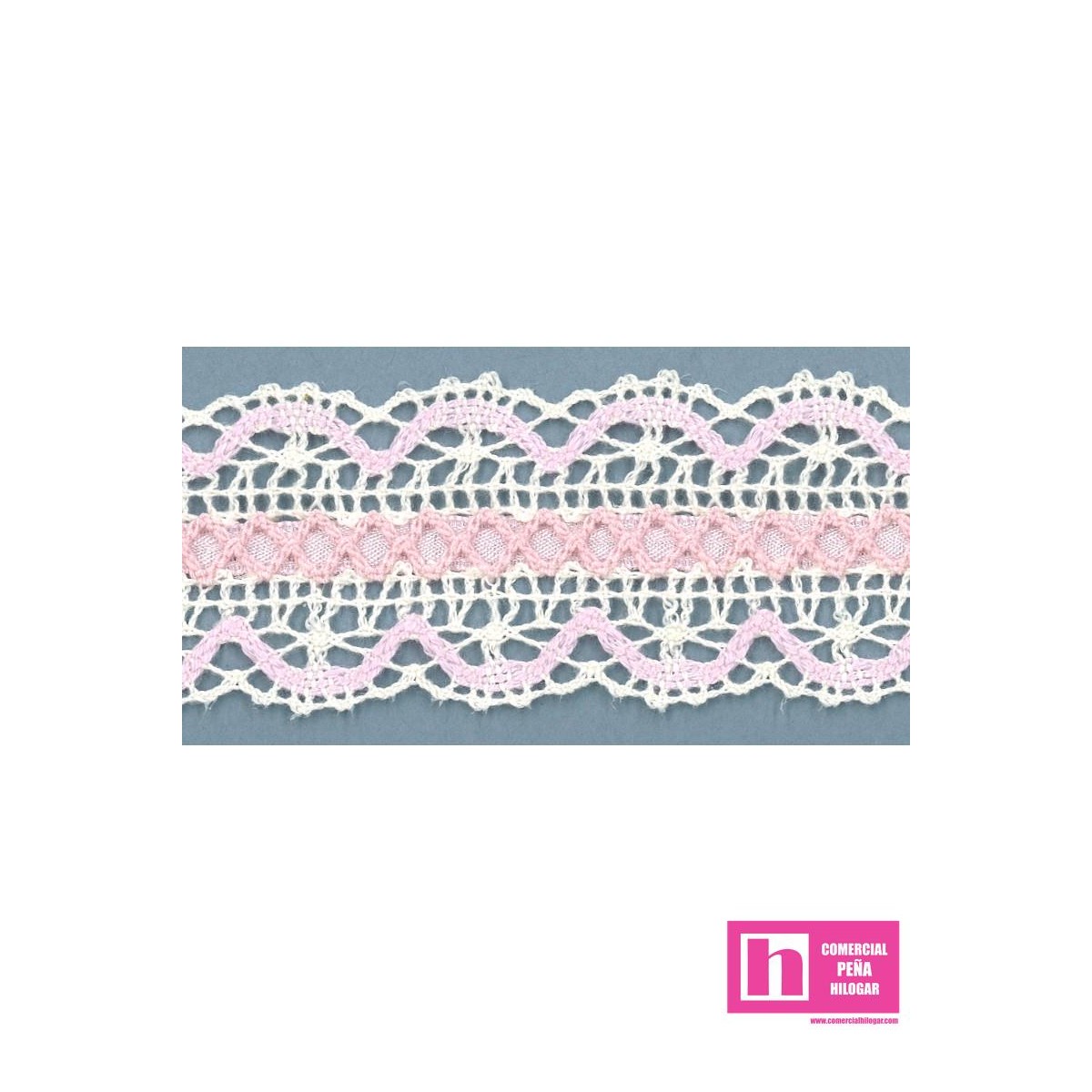 245372-4 GALON CINTA BOLILLO DEKA 35 MM. ALGODON 100% MARFIL/ROSA Venta en piezas de 25.00 M