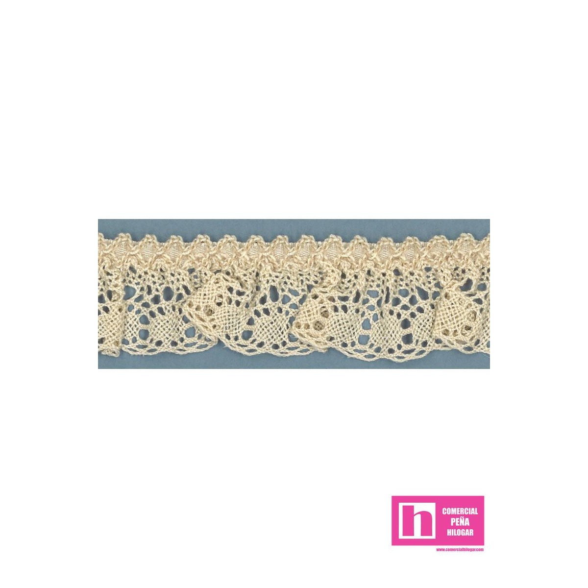 245304-3 PUNTILLA BOLILLO FRUNCIDA KORA 25 MM. ALGODON 100% BEIG Venta en piezas de 25.00 M