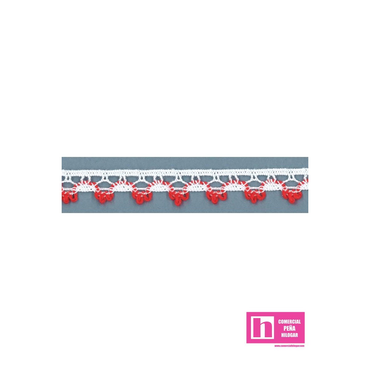 9610-7 REMATE BOLILLO OFRA 12 MM. POLIESTER 100% BLANCO/ROJO Venta en piezas de 25.00 M