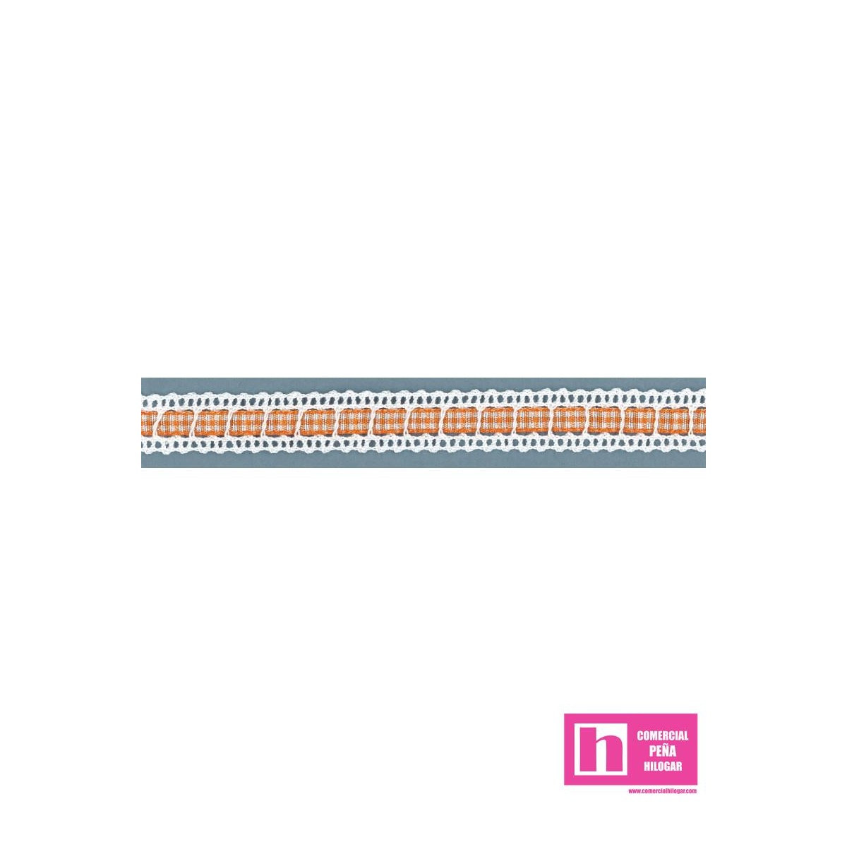 53306 MARCUS ENTREDOS BOLILLO+CINTA 14 MM. POLIESTER 50%-ALGODON 50% BLANCO/NARANJA Venta en piezas de 10.00 M