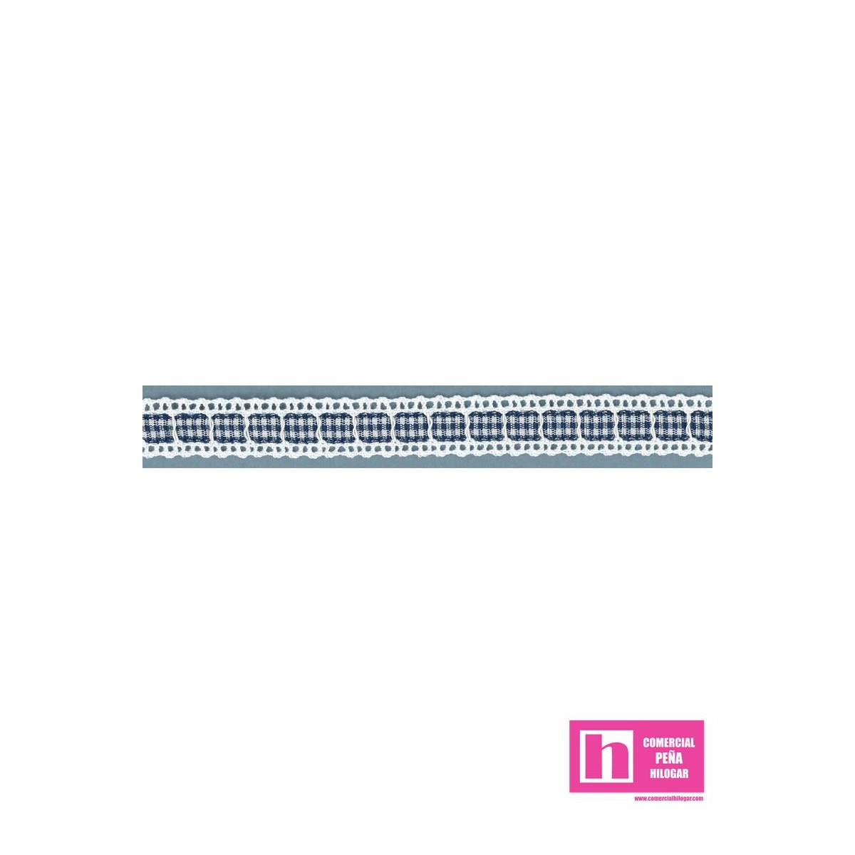 53312 MARCUS ENTREDOS BOLILLO+CINTA 14 MM. POLIESTER 50%-ALGODON 50% BLANCO/AZUL Venta en piezas de 10.00 M