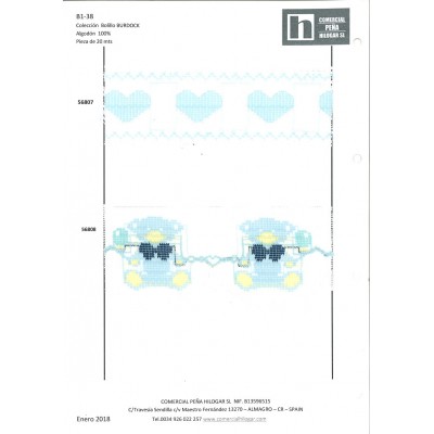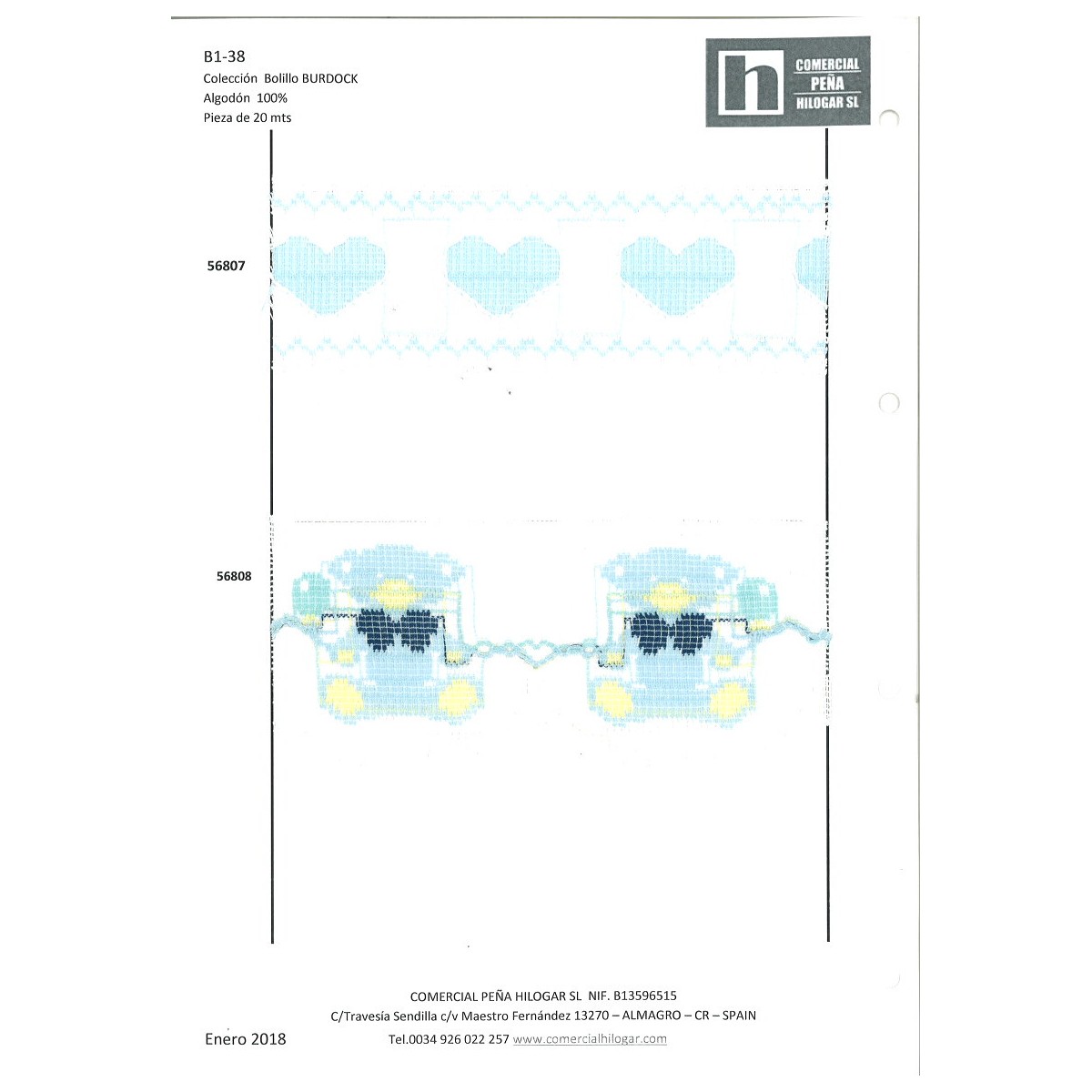 56807 BURDOCK ENTREDOS BOLILLO 50 MM. ALGODON 100% BLANCO/CELESTE Venta en piezas de 10.00 M