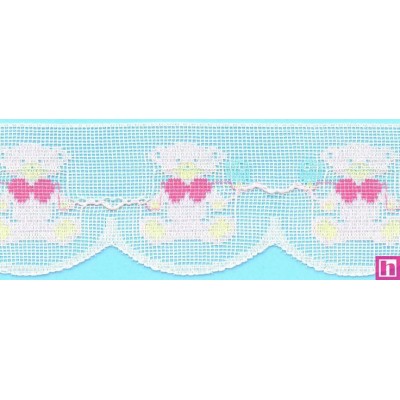 56806 BURDOCK PUNTILLA BOLILLO 70 MM. ALGODON 100% BLANCO/ROSA Venta en piezas de 10.00 M