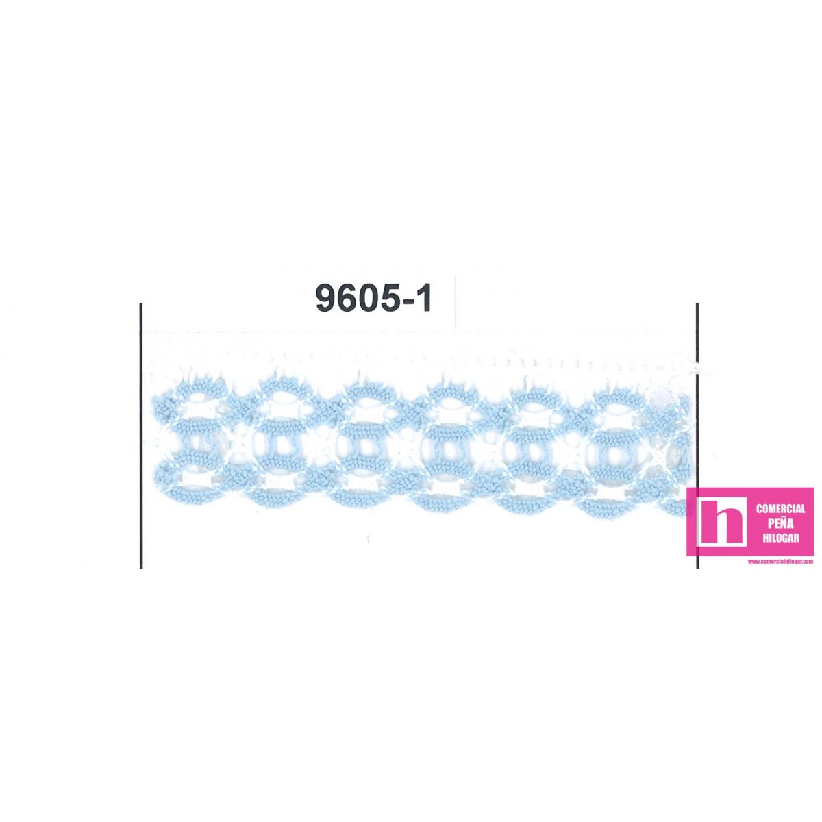 9605-1 PUNTILLA BOLILLO ORAZIO 20 MM. POLIESTER 100% BLANCO/CELESTE Venta en piezas de 25.00 M