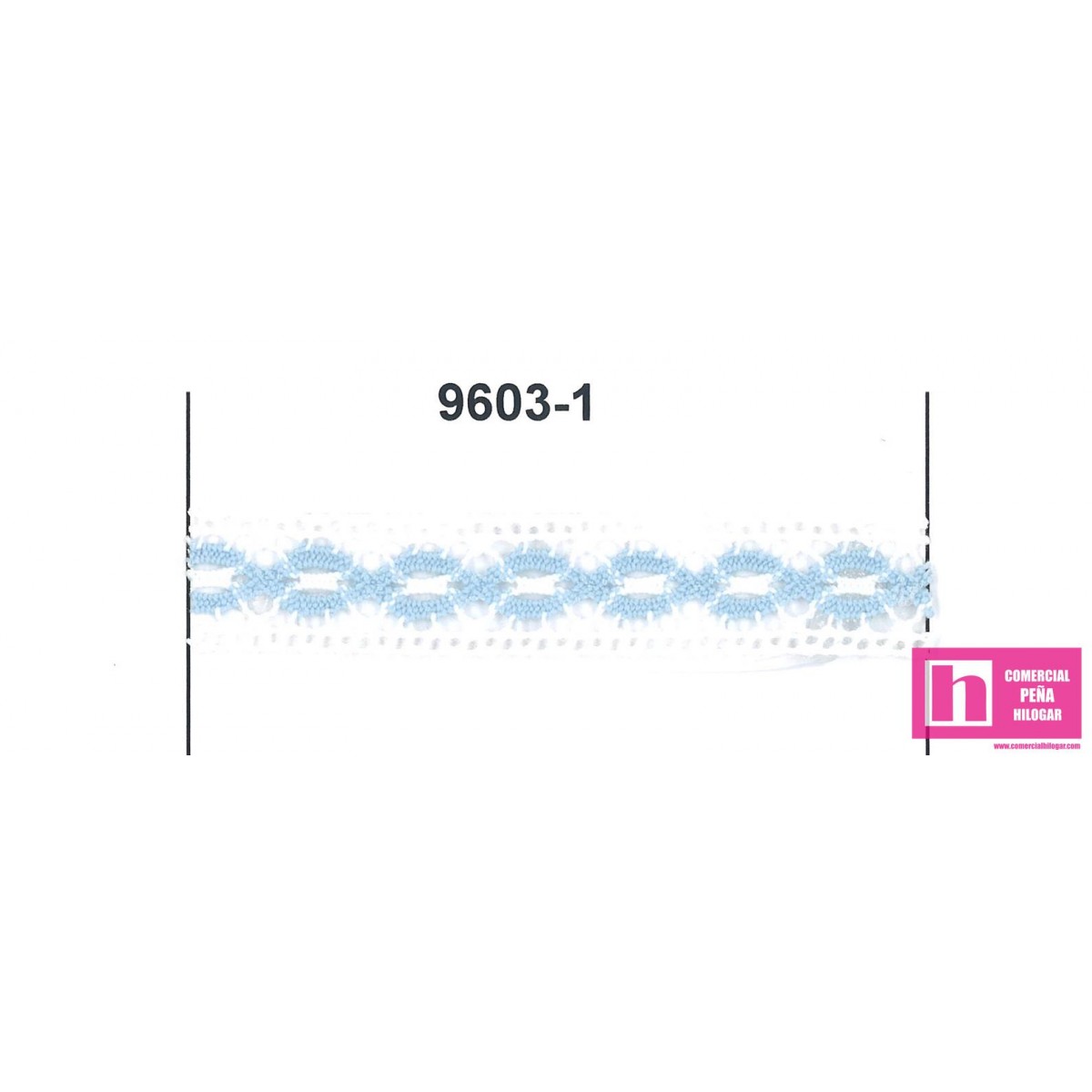 9603-1 ENTREDOS BOLILLO ORAZIO 15 MM. POLIESTER 100% BLANCO/CELESTE Venta en piezas de 25.00 M