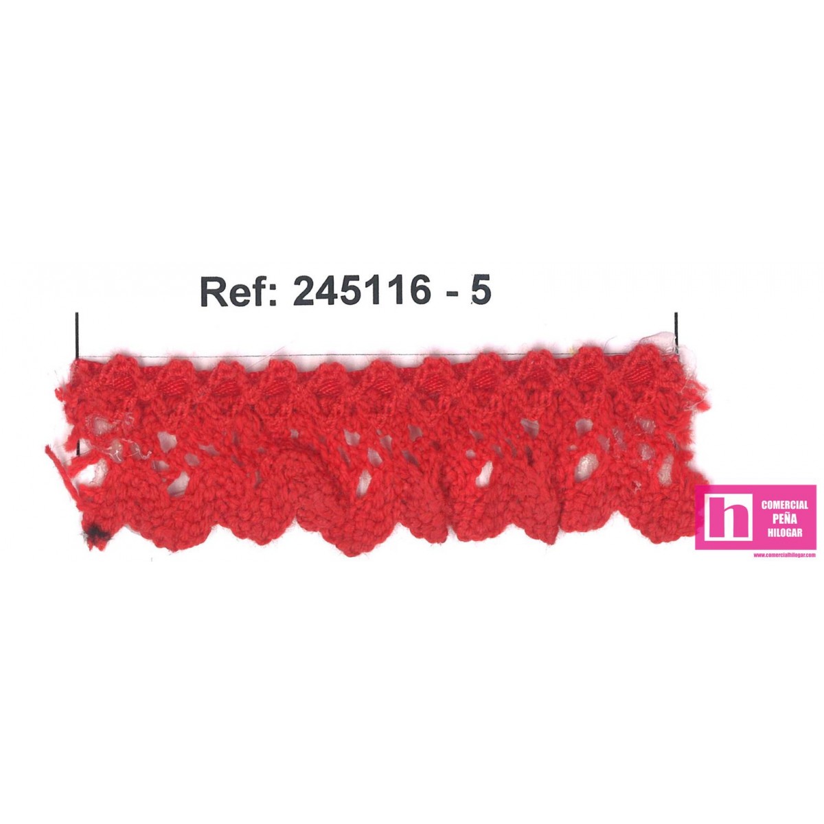 245116-5 PUNTILLA BOLILLO FRUNCIDA ULISSE 20 MM. ALGODON 90%-POL.10% ROJO Venta en piezas de 25.00 M