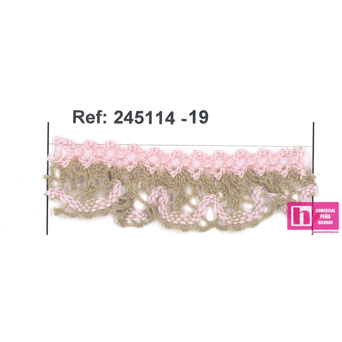 245114-19 PUNTILLA BOLILLO FRUNCIDA SIMONA 20 MM. POLIESTER 100% CAMEL/ROSA Venta en piezas de 25.00 M