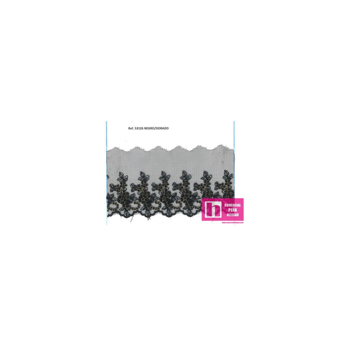 53126 725302-2100_ASUNTA PUNTILLA TUL BORDADO 80 MM POLIESTER 90%-LUREX 10% NEGRO/DORADO Venta en piezas de 18.00 M