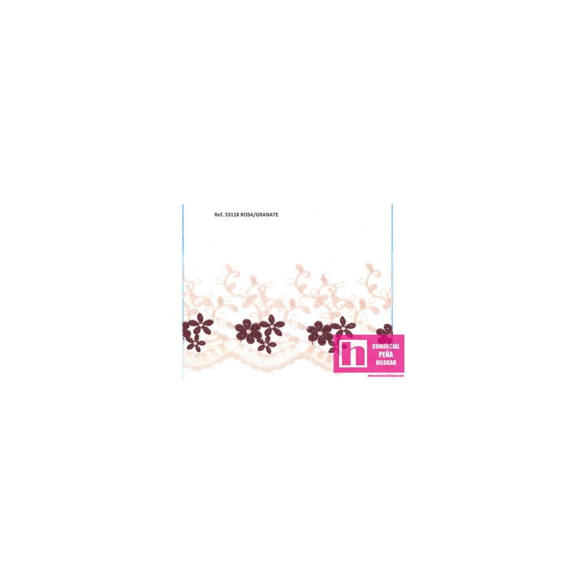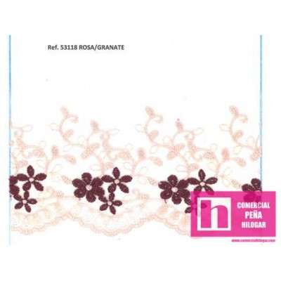 53118 725305-0060_NUNZIA PUNTILLA TUL BORDADO 95 MM POLIESTER 100% ROSA/GRANATE Venta en piezas de 18.00 M