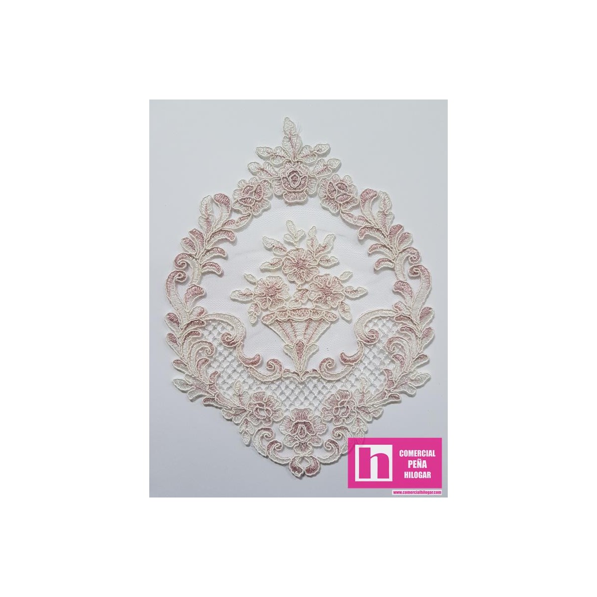 58641 MAAT APLICACION JARRON TUL BORDADO 150X200 MM. POLIESTER 100% MARFIL/ROSA LUREX Venta en piezas de 5.00 U