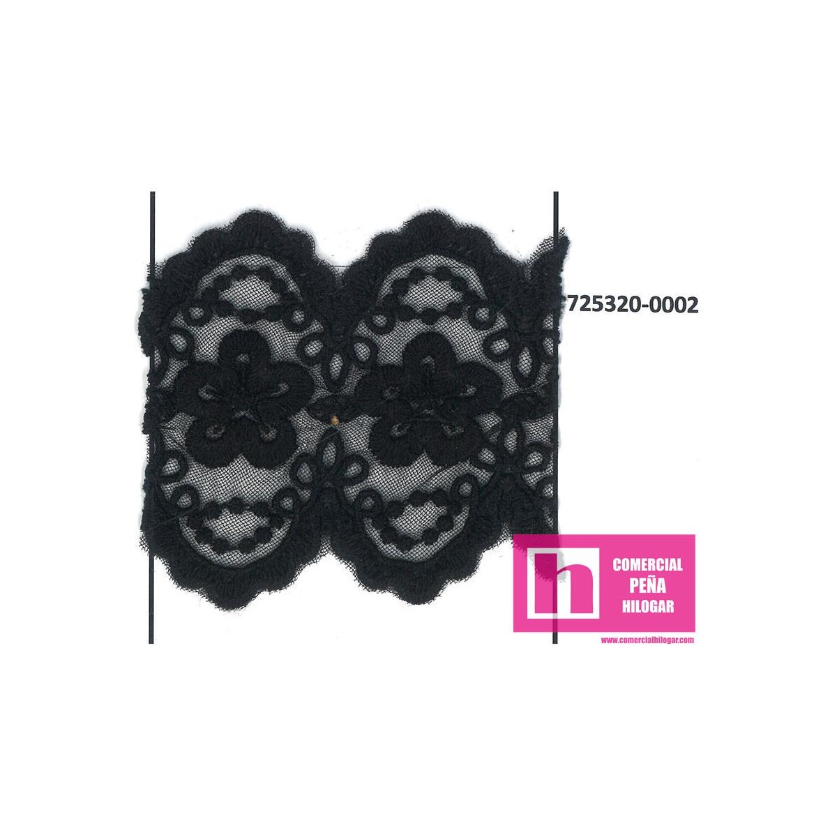 725320-0002 GALON TUL BORDADO NALISA 70 MM NYLON 50%-ALGODON 50% NEGRO Venta en piezas de 17.50 M