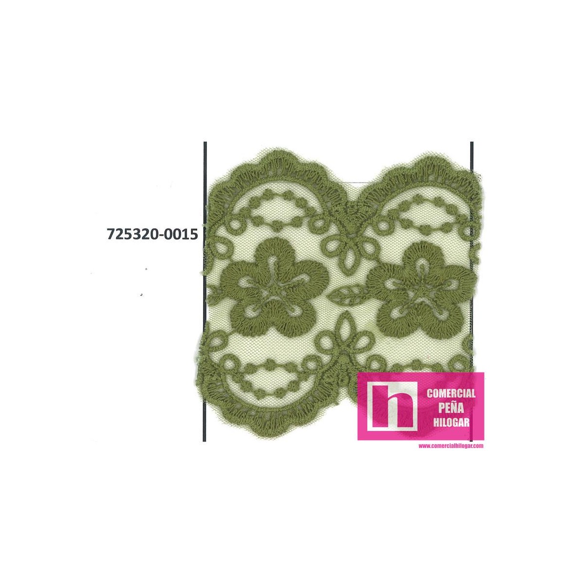 725320-0015 GALON TUL BORDADO NALISA 70 MM NYLON 50%-ALGODON 50% VERDE Venta en piezas de 17.50 M