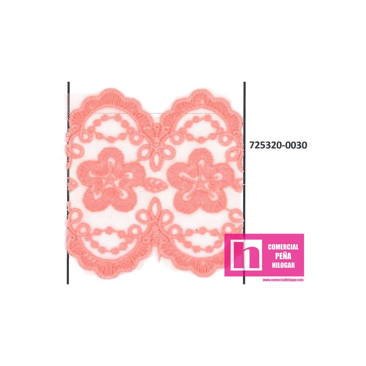 725320-0030 GALON TUL BORDADO NALISA 70 MM NYLON 50%-ALGODON 50% CORAL Venta en piezas de 17.50 M