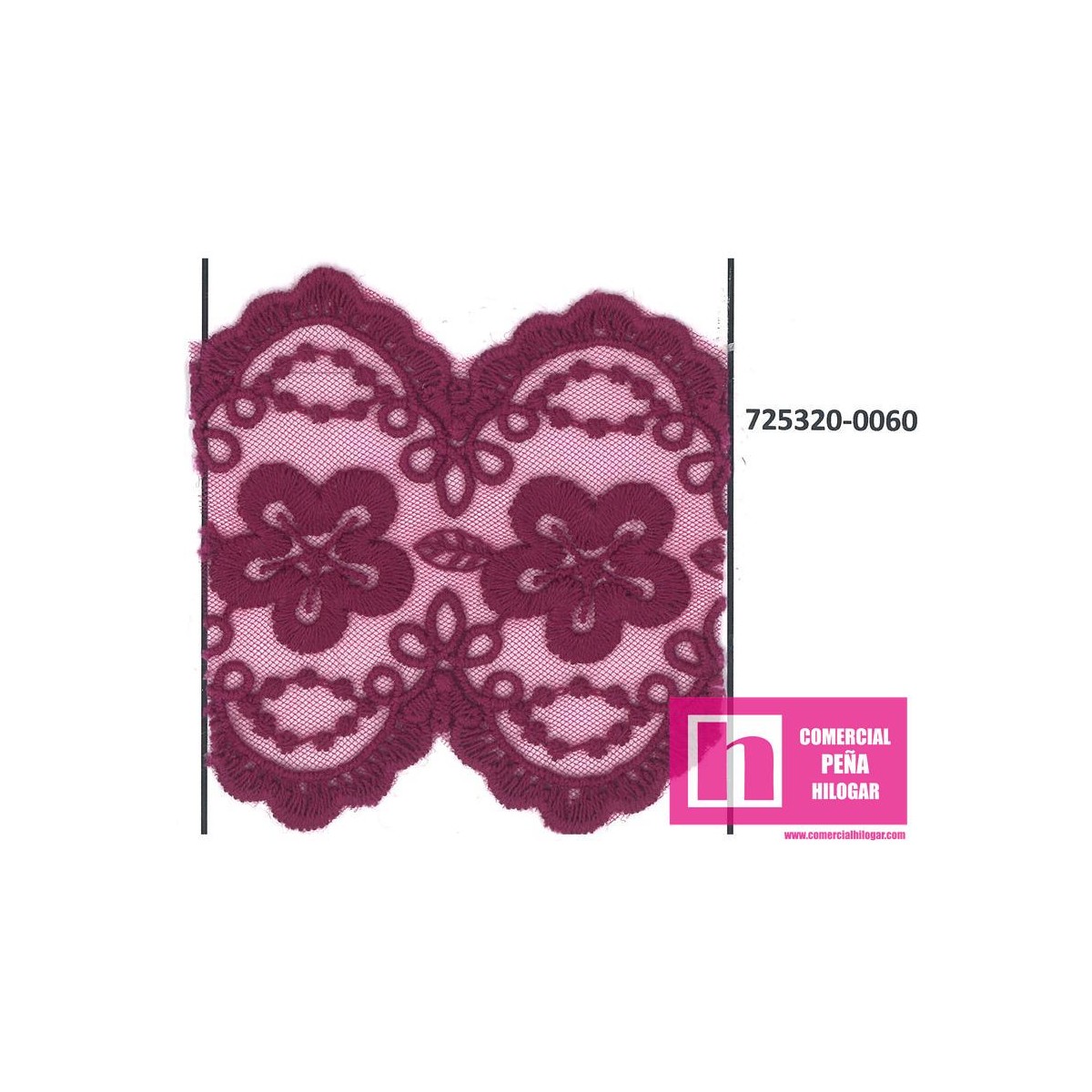 725320-0060 GALON TUL BORDADO NALISA 70 MM NYLON 50%-ALGODON 50% GRANATE Venta en piezas de 17.50 M