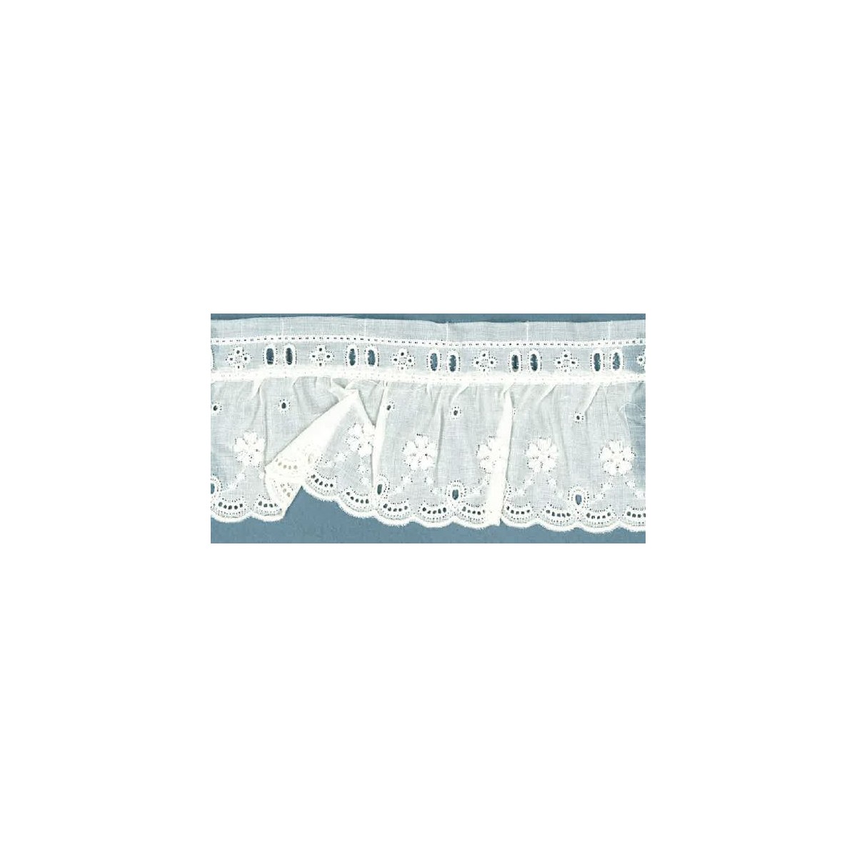 35940/36-000 BORDADO FRUNCIDO BATISTA QUISOL POLIESTER 60%-ALGODON 40% BLANCO Venta en piezas de 11.00 M