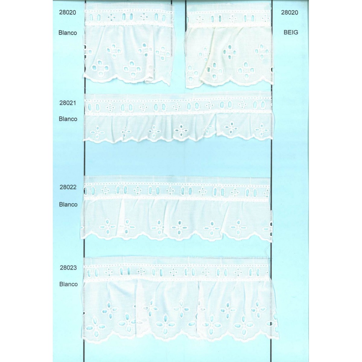 28020-000 BORDADO FRUNCIDO BATISTA LARIAT POLIESTER 60%-ALGODON 40% BLANCO Venta en piezas de 11.00 M