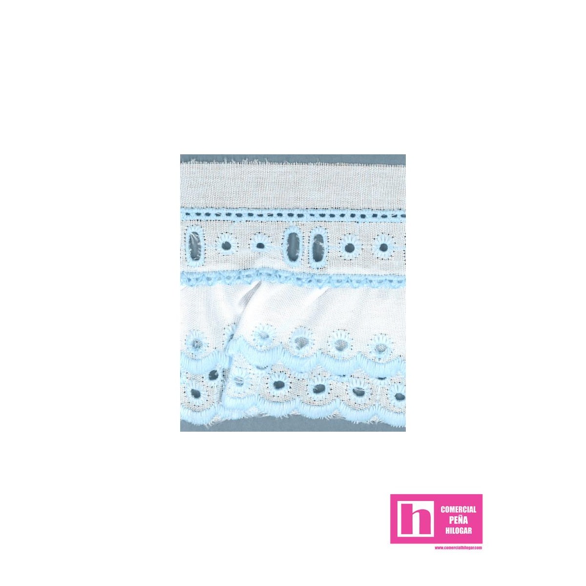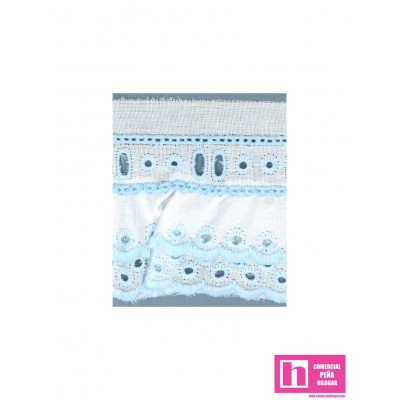 11786/788/90-3 TIRA BORDADA FRUNCIDA DOBLE ALFONSINA 45 MM. POL.60%-ALGODON 40% BLANCO/CELESTE Venta en piezas de 11.00 M