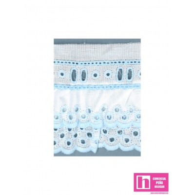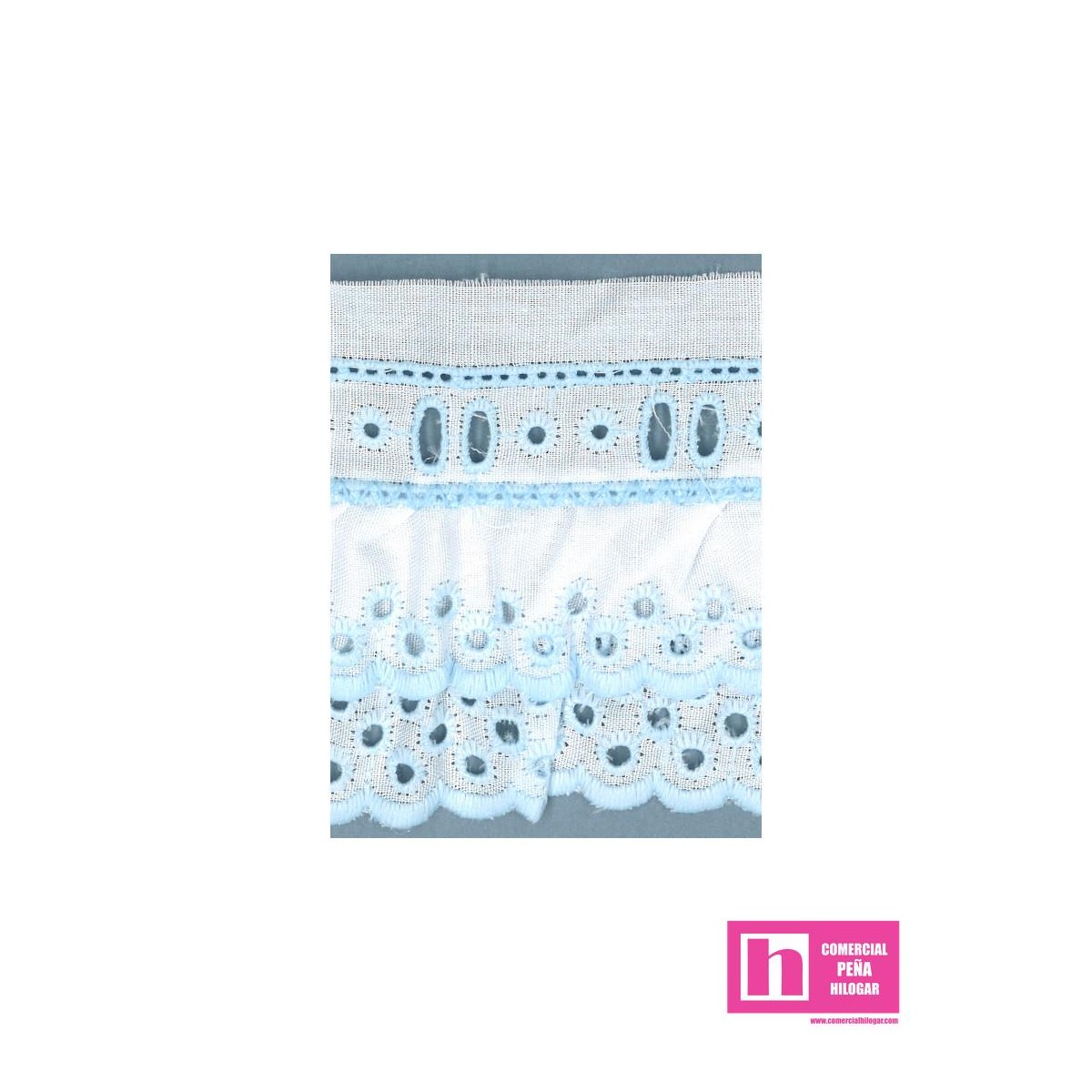 11785/787/90-3 TIRA BORDADA FRUNCIDA DOBLE ALFONSINA 55 MM. POL.60%-ALGODON 40% BLANCO/CELESTE Venta en piezas de 11.00 M