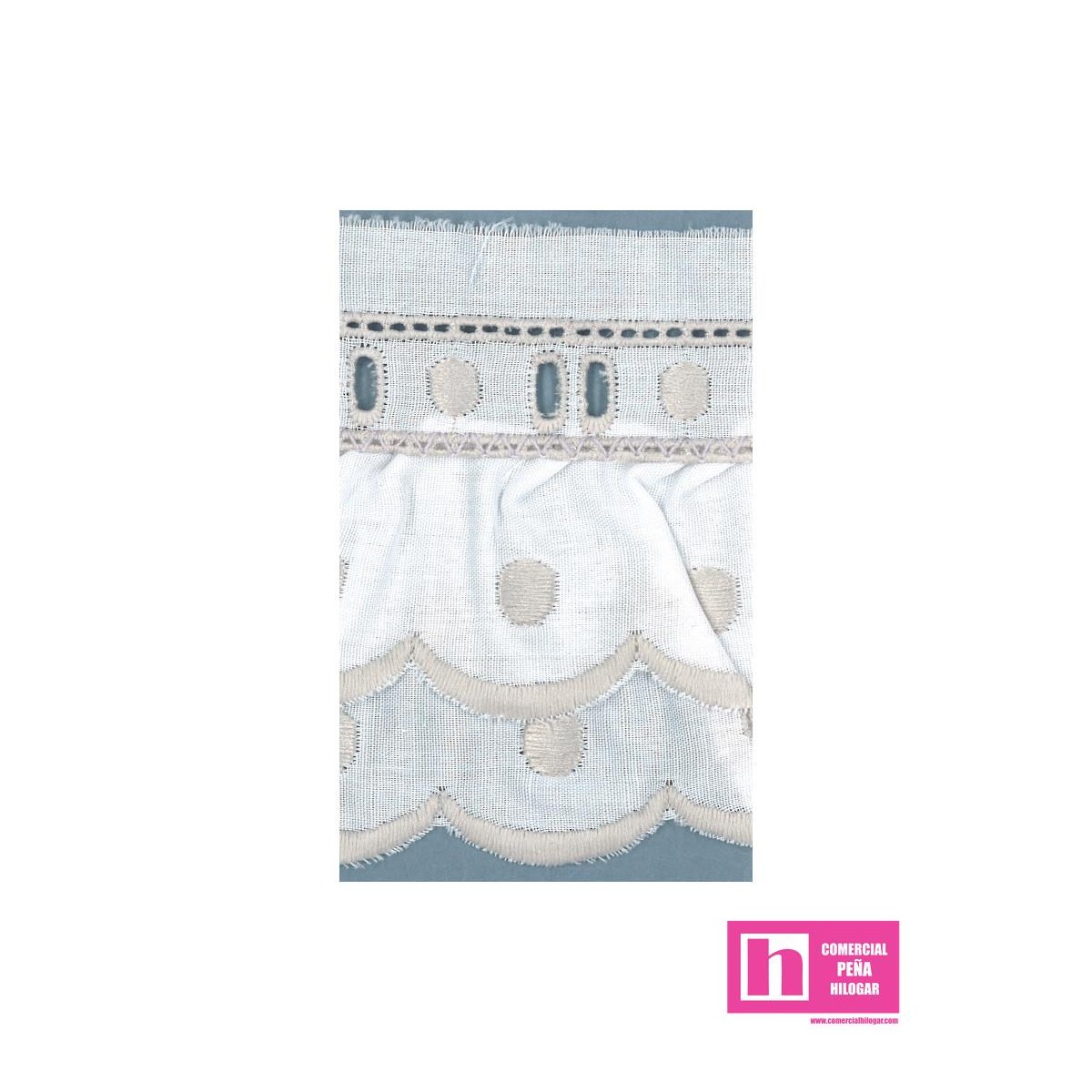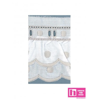 11699/700/02-29 TIRA BORDADA FRUNCIDA DOBLE LIONETTA 65 MM. POL.60%-ALGODON 40% BLANCO/GRIS Venta en piezas de 11.00 M