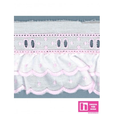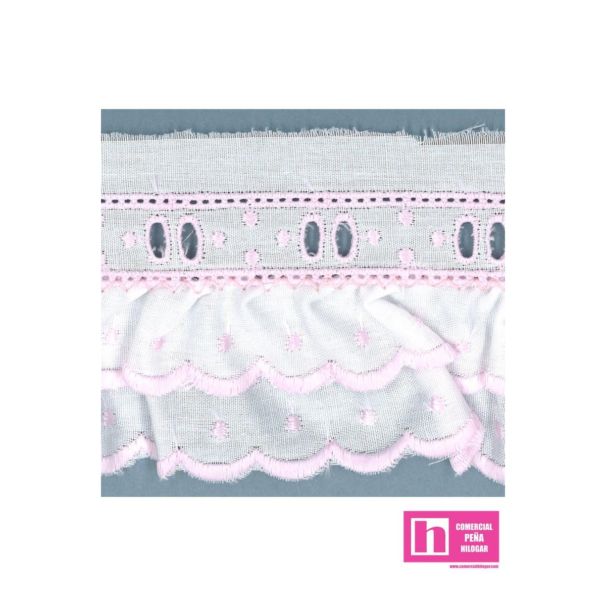 11694/695/97-7 TIRA BORDADA FRUNCIDA DOBLE JACOBELLA 50 MM. POL.60%-ALGODON 40% BLANCO/ROSA Venta en piezas de 11.00 M