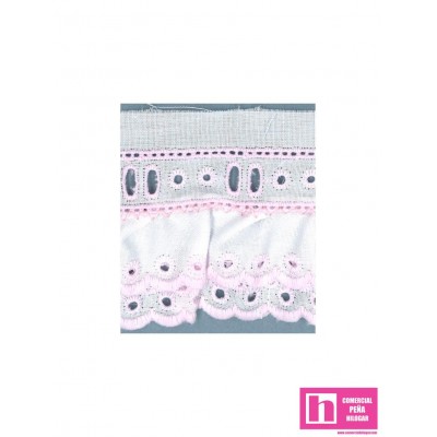 11786/788/90-7 TIRA BORDADA FRUNCIDA DOBLE ALFONSINA 45 MM. POL.60%-ALGODON 40% BLANCO/ROSA Venta en piezas de 11.00 M