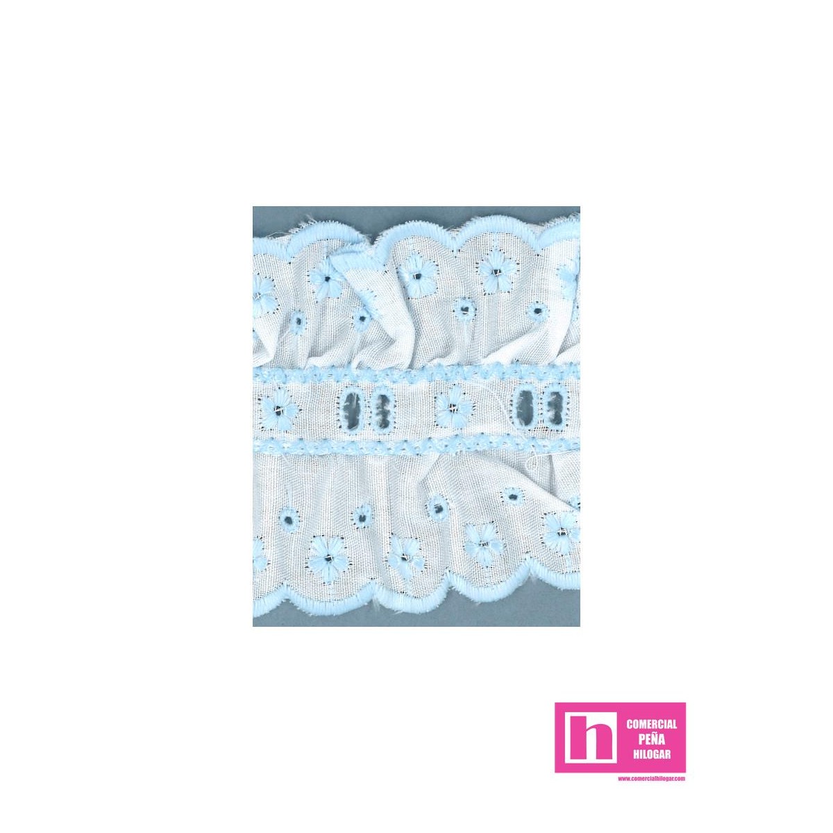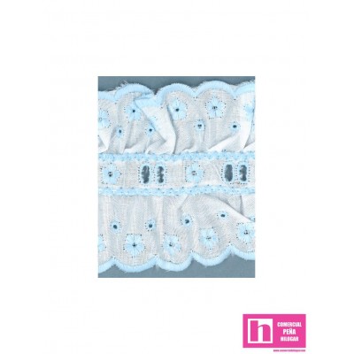 07/11804-3 GALON BORDADO FRUNCIDO ANAROSSA 65 MM. POL.60%-ALGODON 40% BLANCO/CELESTE Venta en piezas de 11.00 M