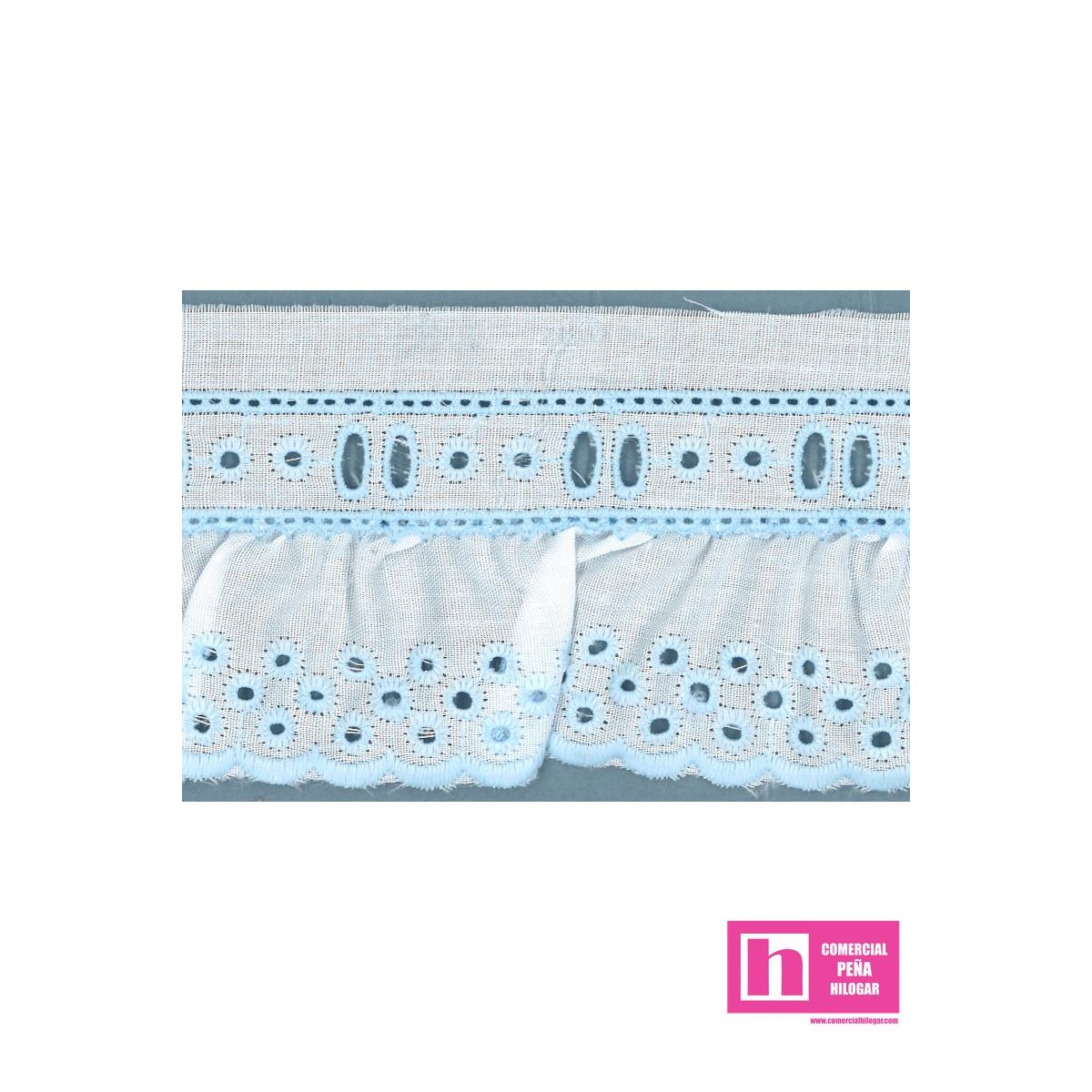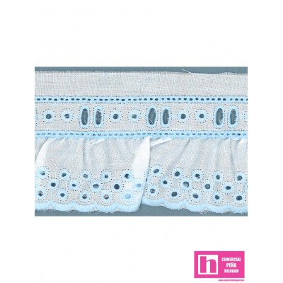 11786/90-3 TIRA BORDADA FRUNCIDA ALFONSINA 45 MM. POL.60%-ALGODON 40% BLANCO/CELESTE Venta en piezas de 11.00 M