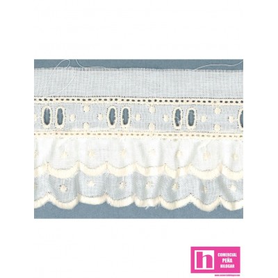 11694/695/97-2 TIRA BORDADA FRUNCIDA DOBLE JACOBELLA 50 MM. POL.60%-ALGODON 40% BEIG Venta en piezas de 11.00 M