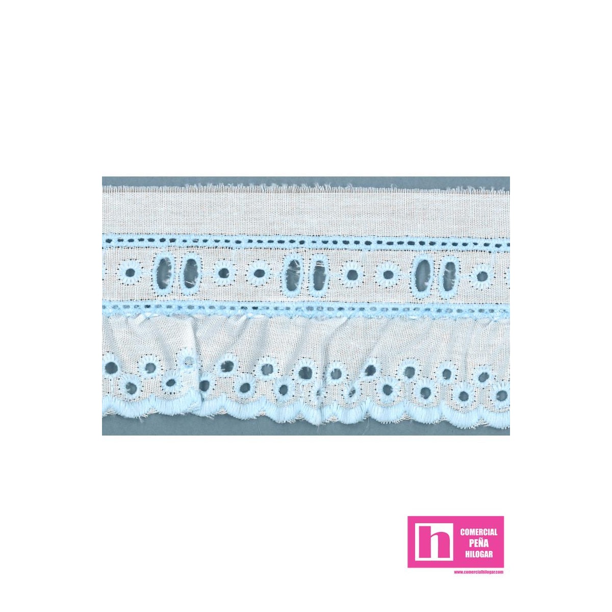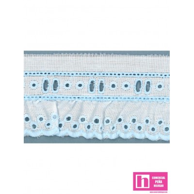 11787/90-3 TIRA BORDADA FRUNCIDA ALFONSINA 40 MM. POL.60%-ALGODON 40% BLANCO/CELESTE Venta en piezas de 11.00 M