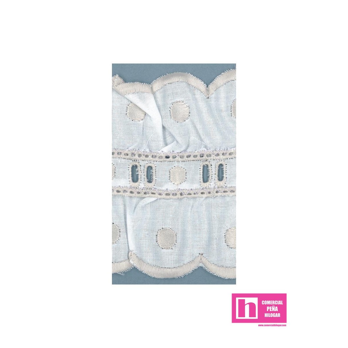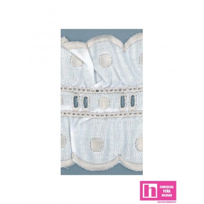 02/11700-29 GALON BORDADO FRUNCIDO LIONETTA 75 MM. POL.60%-ALGODON 40% BLANCO/GRIS Venta en piezas de 11.00 M