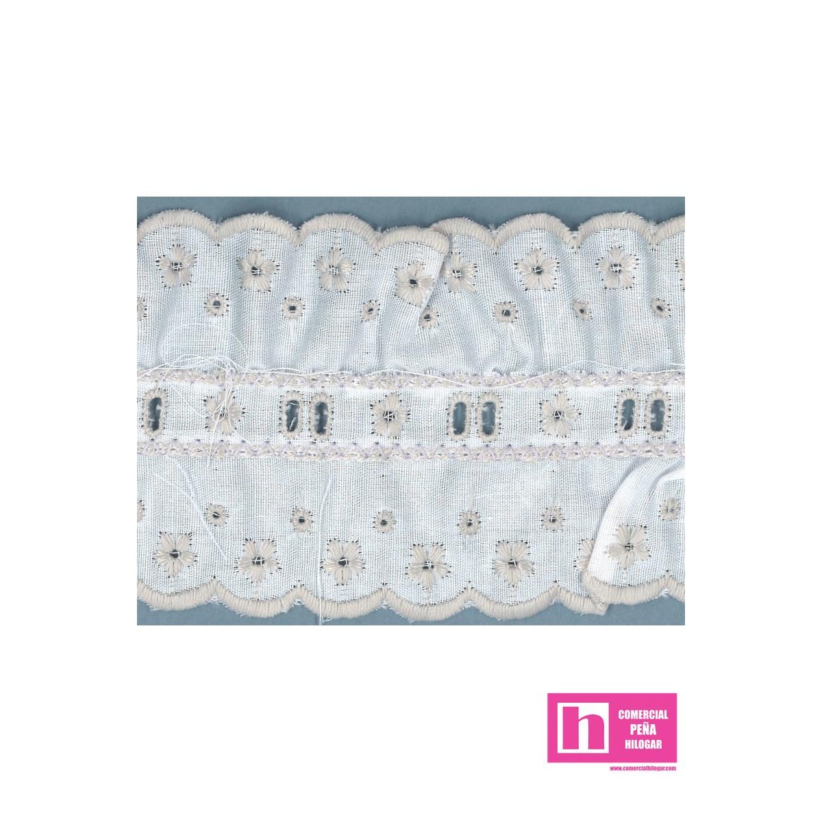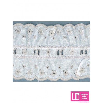07/11804-29 GALON BORDADO FRUNCIDO ANAROSSA 65 MM. POL.60%-ALGODON 40% BLANCO/GRIS Venta en piezas de 11.00 M