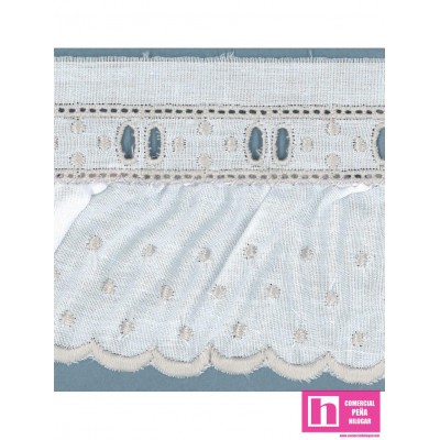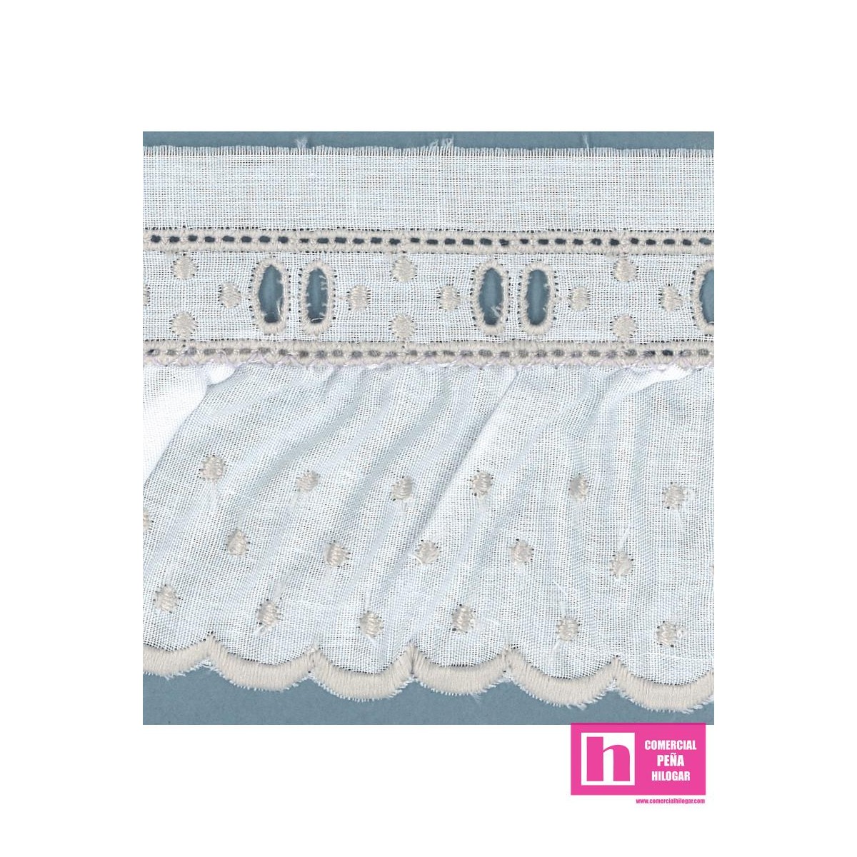 11693/97-29 TIRA BORDADA FRUNCIDA JACOBELLA 60 MM. POL.60%-ALGODON 40% BLANCO/GRIS Venta en piezas de 11.00 M
