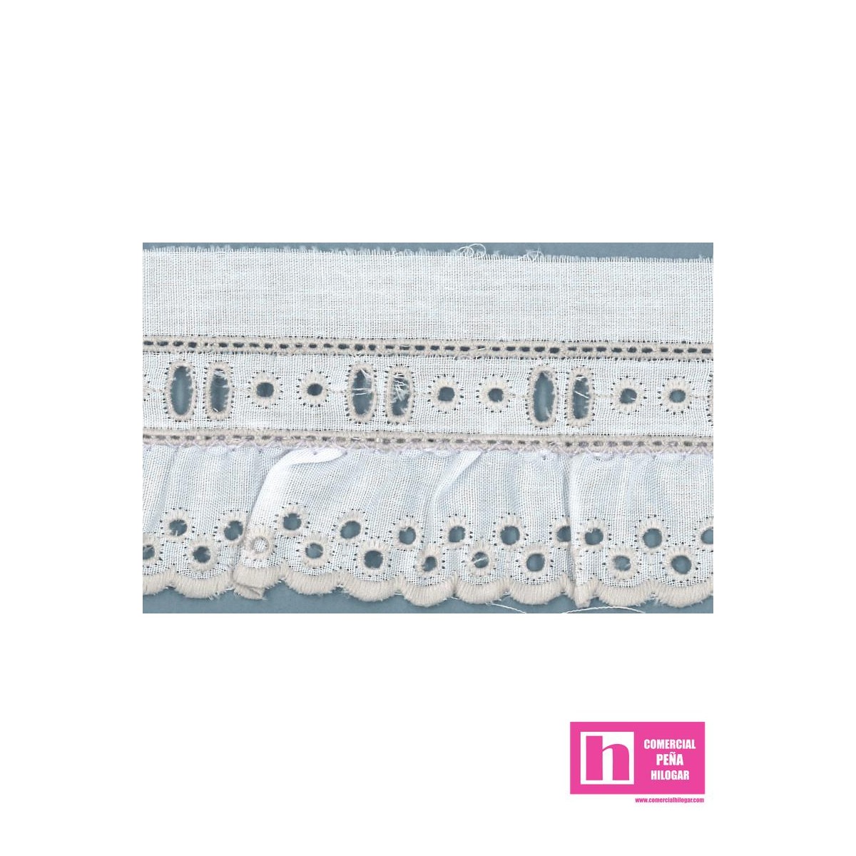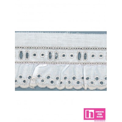 11787/90-29 TIRA BORDADA FRUNCIDA ALFONSINA 40 MM. POL.60%-ALGODON 40% BLANCO/GRIS Venta en piezas de 11.00 M