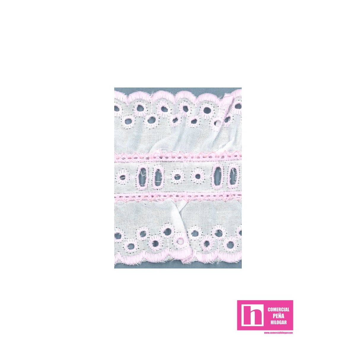 90/11787-7 GALON BORDADO FRUNCIDO ALFONSINA 60 MM. POL.60%-ALGODON 40% BLANCO/ROSA Venta en piezas de 11.00 M
