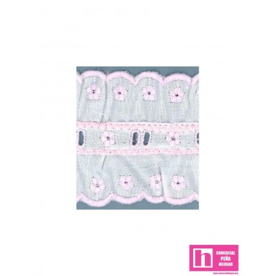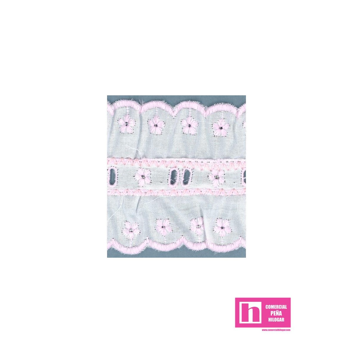 07/11805-7 GALON BORDADO FRUNCIDO ANAROSSA 55 MM. POL.60%-ALGODON 40% BLANCO/ROSA Venta en piezas de 11.00 M