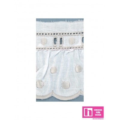 11699/02-29 TIRA BORDADA FRUNCIDA LIONETTA 60 MM. POL.60%-ALGODON 40% BLANCO/GRIS Venta en piezas de 11.00 M