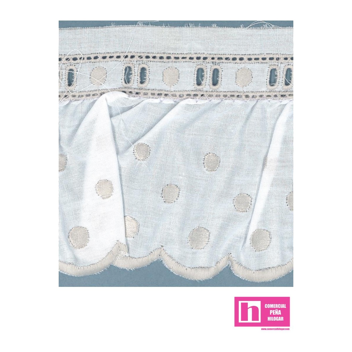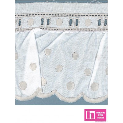 11698/02-29 TIRA BORDADA FRUNCIDA LIONETTA 80 MM. POL.60%-ALGODON 40% BLANCO/GRIS Venta en piezas de 11.00 M
