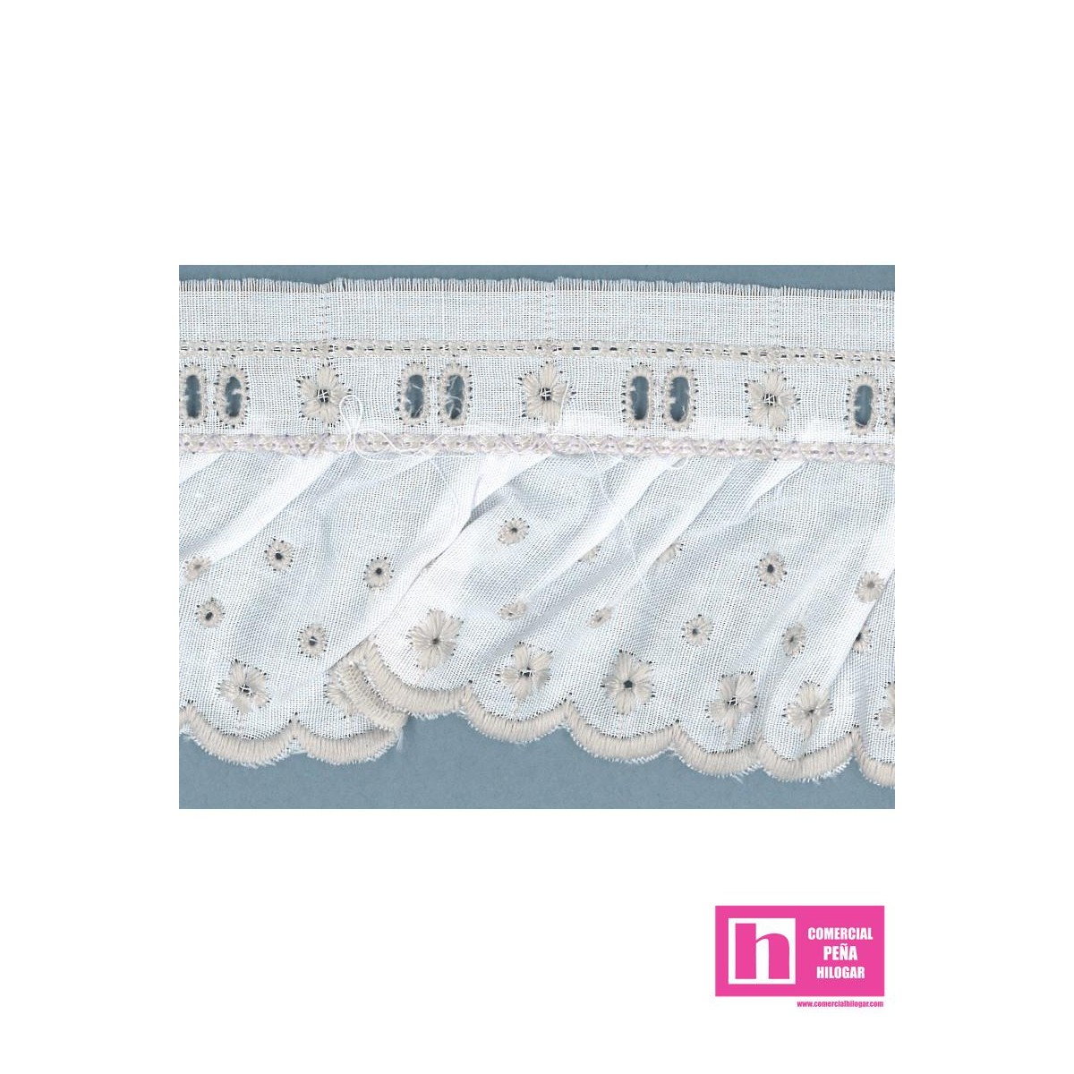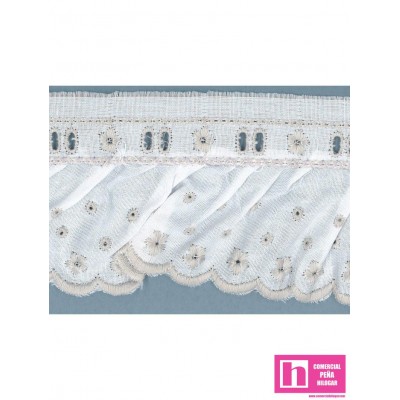 11803/07-29 TIRA BORDADA FRUNCIDA ANAROSSA 55 MM. POL.60%-ALGODON 40% BLANCO/GRIS Venta en piezas de 11.00 M