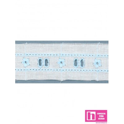 11807-3 PASACINTAS BORDADO ANAROSSA 13 MM. POL.60%-ALGODON 40% BLANCO/CELESTE Venta en piezas de 13.80 M