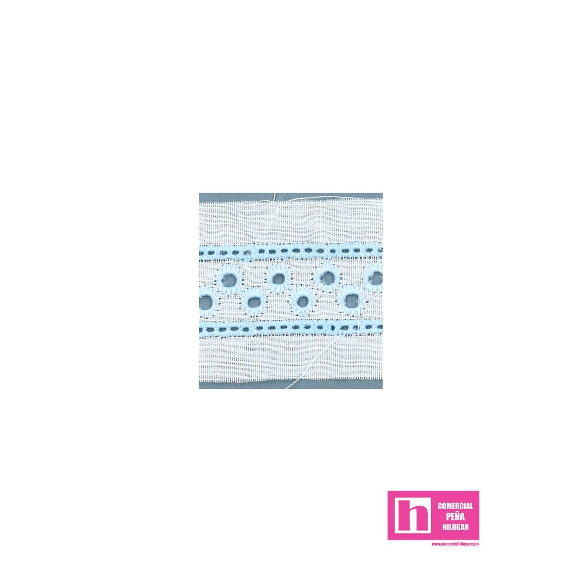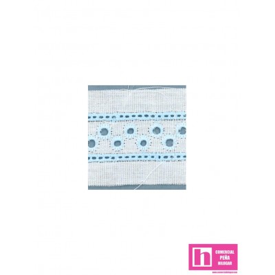 11789-3 ENTREDOS BORDADO ALFONSINA 15 MM. POL.60%-ALGODON 40% BLANCO/CELESTE Venta en piezas de 13.80 M