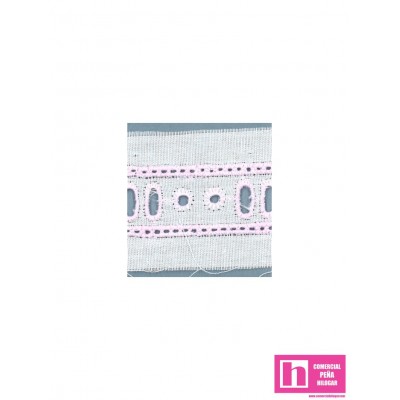 11790-7 PASACINTAS BORDADO ALFONSINA 15 MM. POL.60%-ALGODON 40% BLANCO/ROSA Venta en piezas de 13.80 M