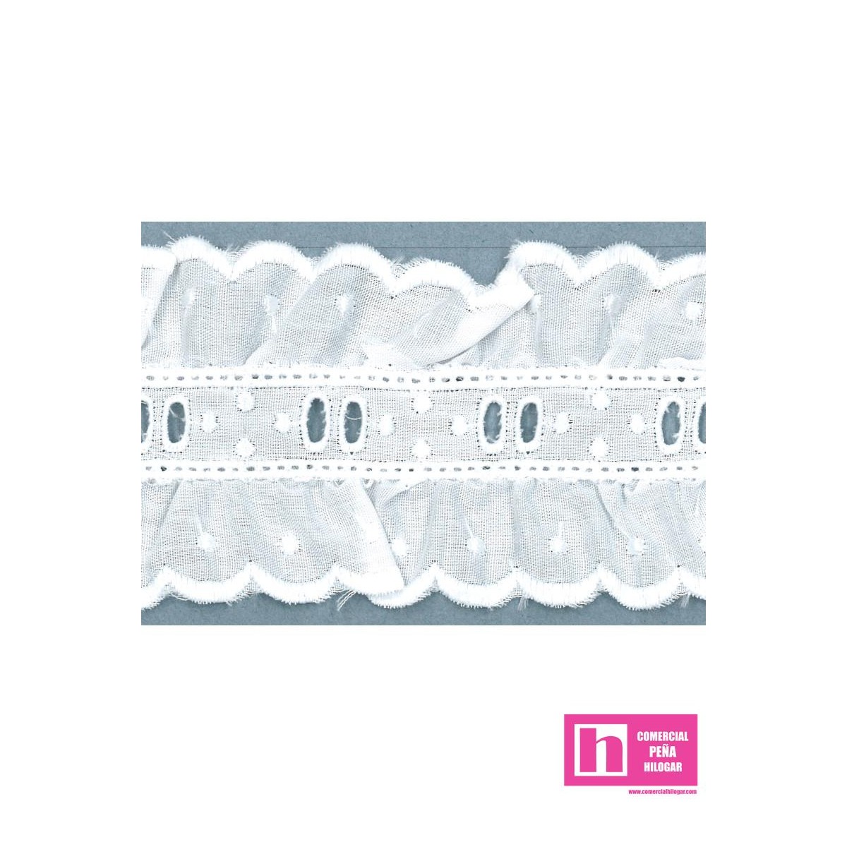 97/11695-1 GALON BORDADO FRUNCIDO JACOBELLA 50 MM. POL.60%-ALGODON 40% BLANCO Venta en piezas de 11.00 M