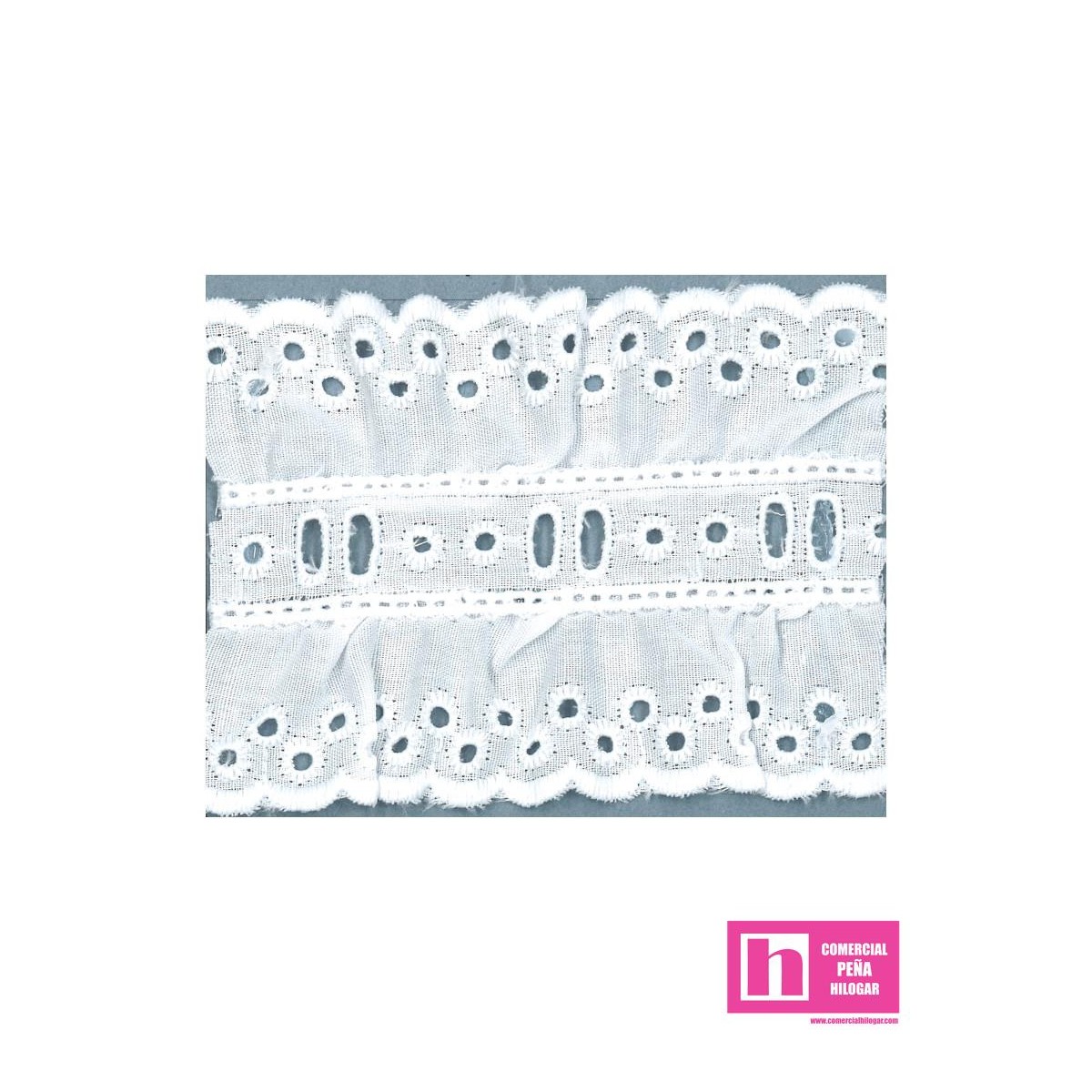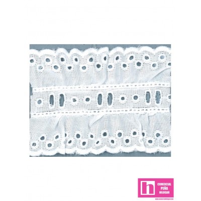 90/11787-1 GALON BORDADO FRUNCIDO ALFONSINA 60 MM. POL.60%-ALGODON 40% BLANCO Venta en piezas de 11.00 M