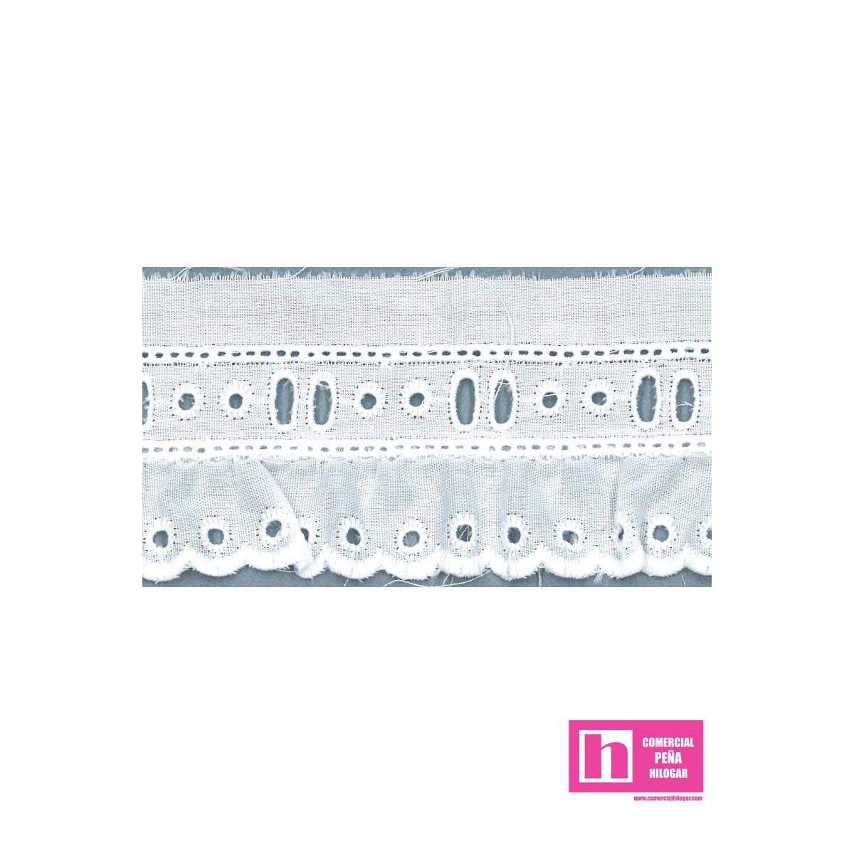 11788/90-1 TIRA BORDADA FRUNCIDA ALFONSINA 35 MM. POL.60%-ALGODON 40% BLANCO Venta en piezas de 11.00 M