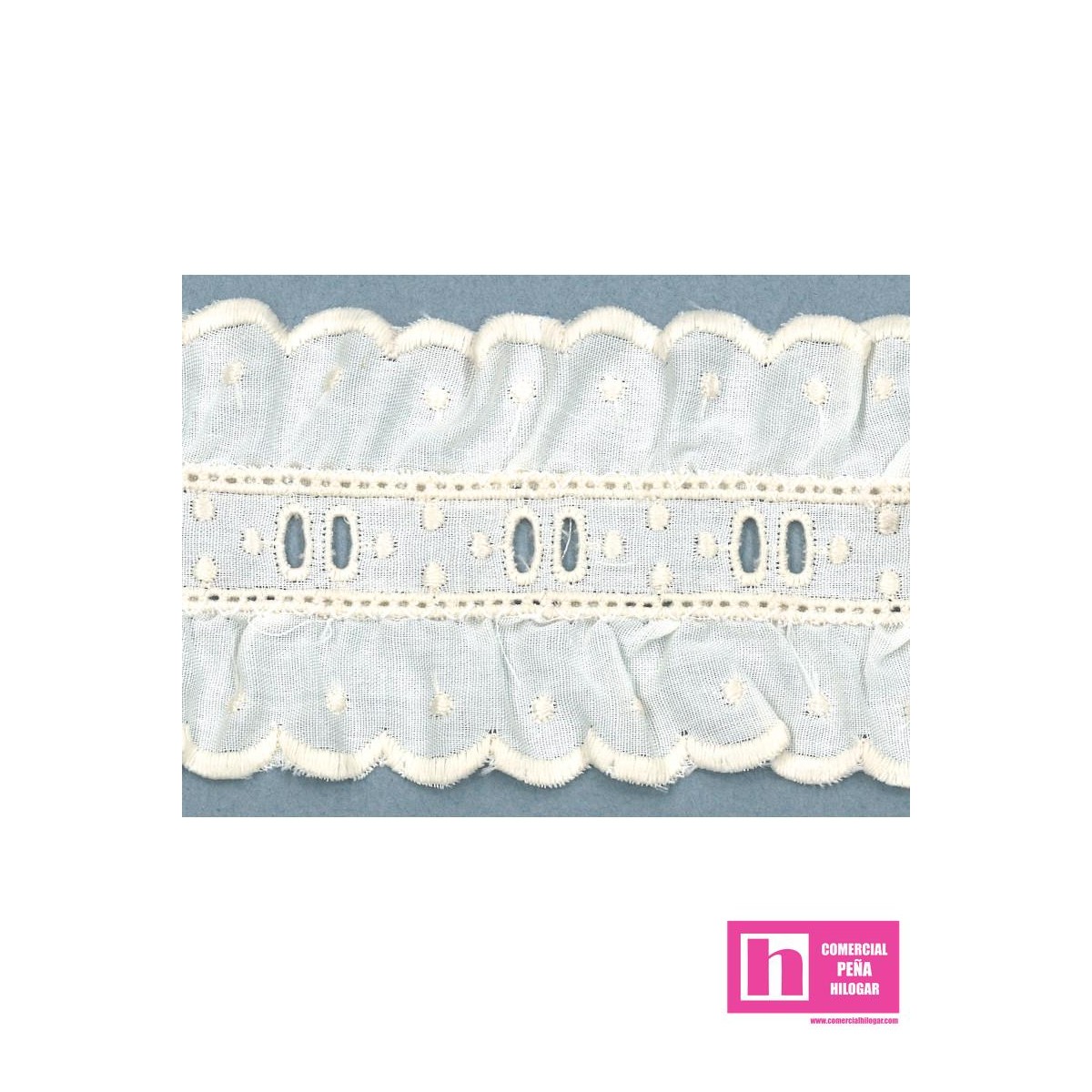 97/11695-2 GALON BORDADO FRUNCIDO JACOBELLA 50 MM. POL.60%-ALGODON 40% BEIG Venta en piezas de 11.00 M