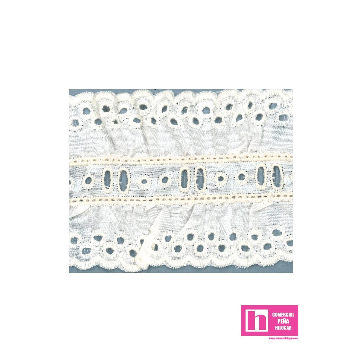 90/11787-2 GALON BORDADO FRUNCIDO ALFONSINA 60 MM. POL.60%-ALGODON 40% BEIG Venta en piezas de 11.00 M