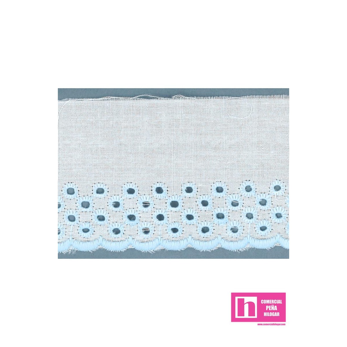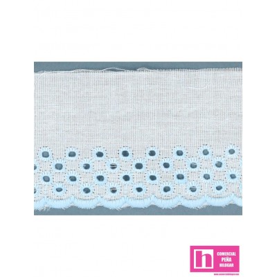 11785-3 TIRA BORDADA ALFONSINA 50 MM. POL.60%-ALGODON 40% BLANCO/CELESTE Venta en piezas de 13.80 M