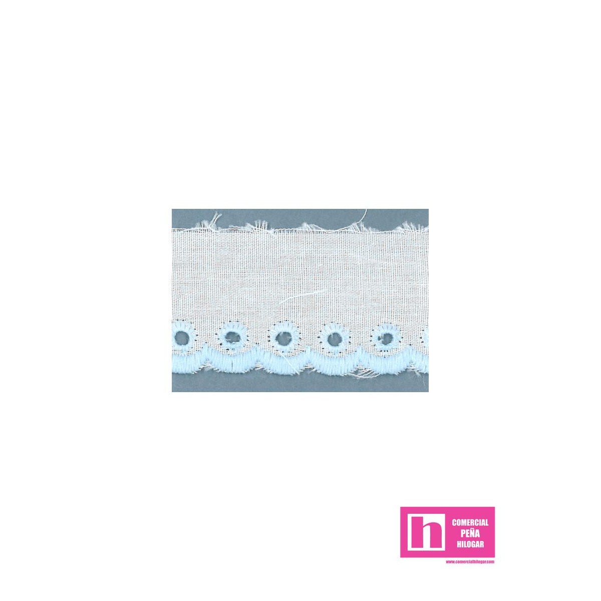 11788-3 TIRA BORDADA ALFONSINA 20 MM. POL.60%-ALGODON 40% BLANCO/CELESTE Venta en piezas de 13.80 M